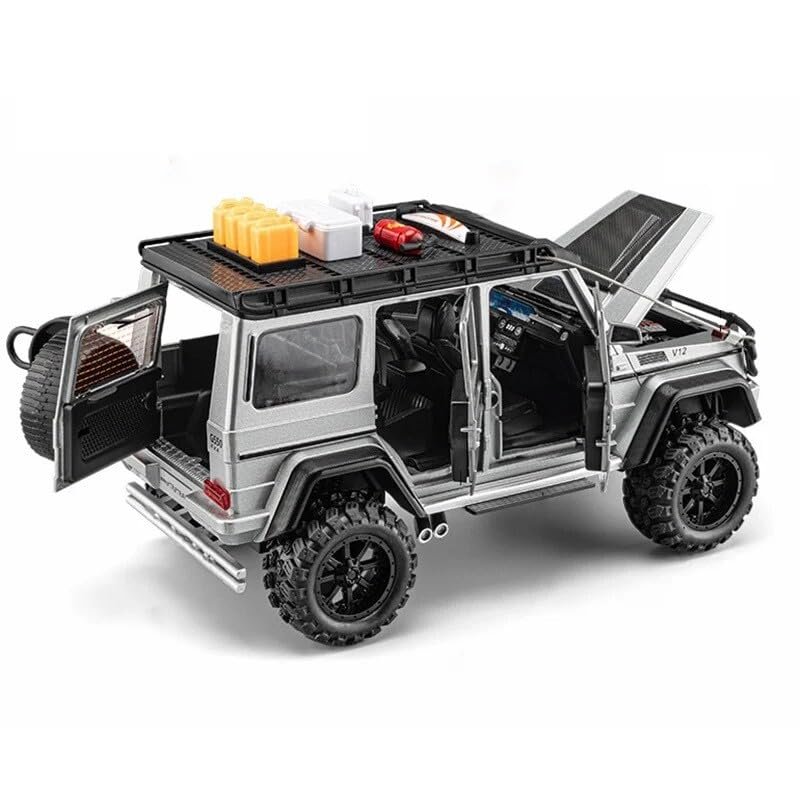 - Open all four doors to reveal a meticulously designed interior. Pop the hood, and you’ll be greeted by a miniature engine and authentic peripheral pipeline accessories. Plus, the tailgate opens smoothly, adding to the realism.