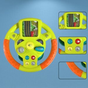 • The steering wheel features an array of interactive buttons that produce various sound effects, including honking, engine revving, and music.